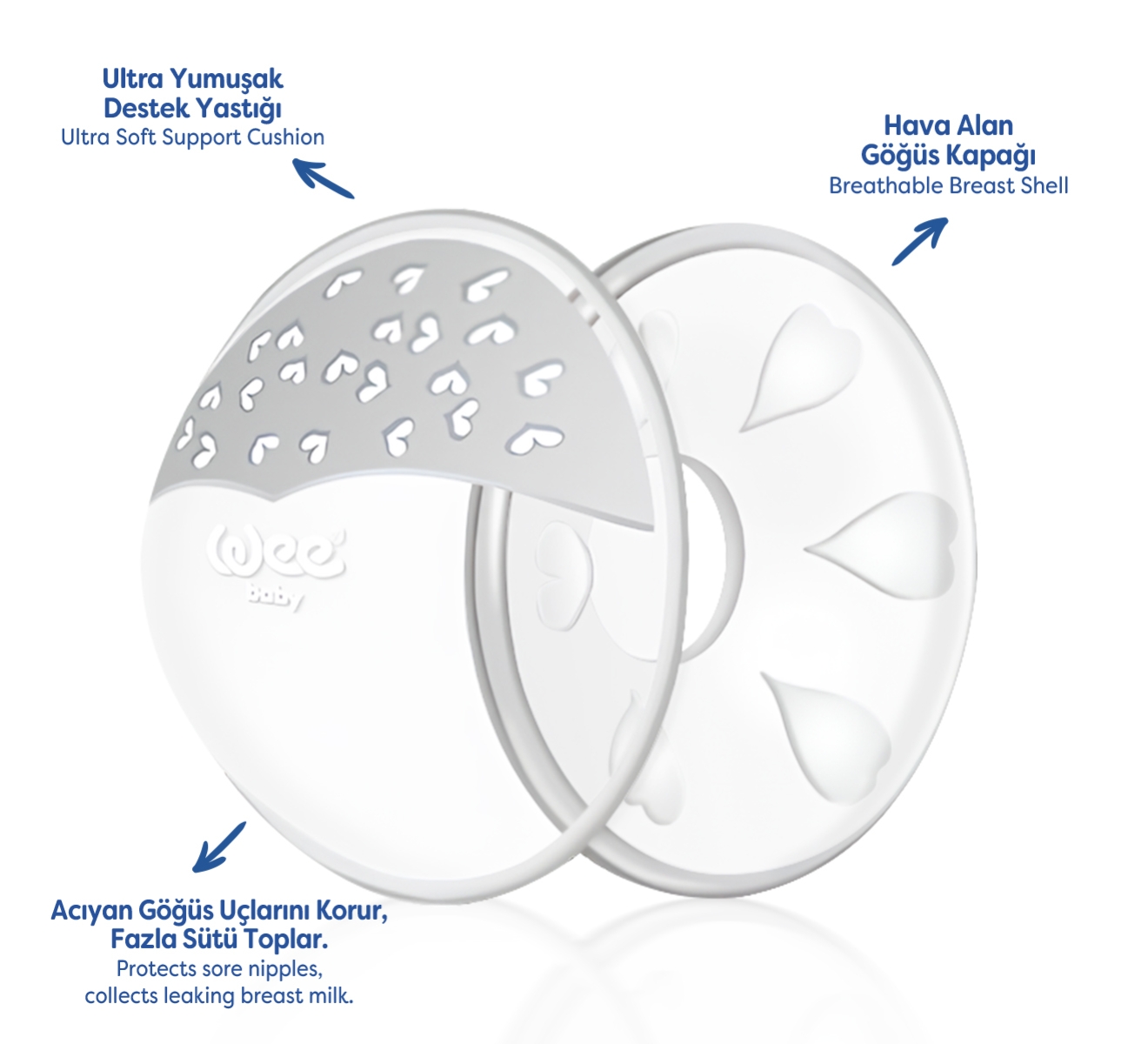 Soft padded shells worn inside the bra protect nipples from friction and collect leaking milk.